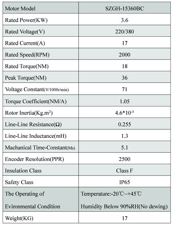 GH-15360BC is 150 flange, 220V/380V,3600W,18NM, 2000RPM AC servo motor